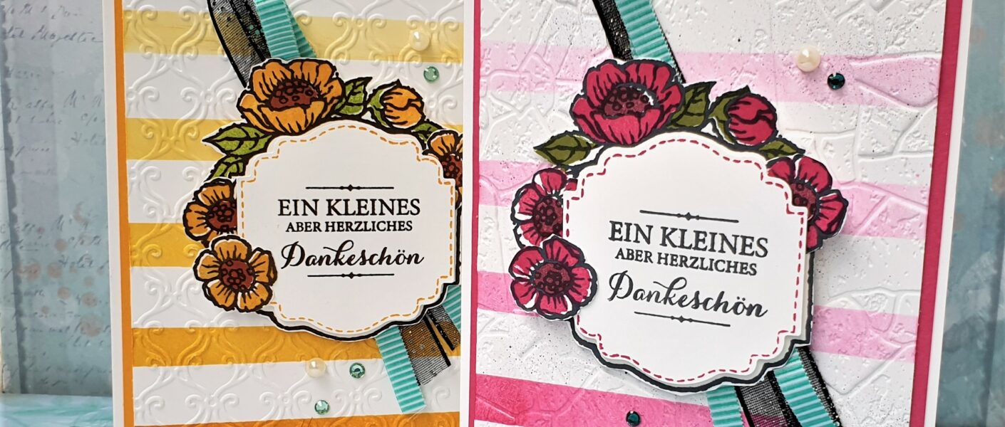 Ich habe mich bei der Karte für die beiden tollen Stempelsets „Florale Etiketten“ und „Mit Liebe Angehängt“ entschieden. Für mich wunderbar passend zum kommenden Frühling.