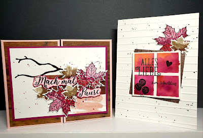 Da meine Blätter einen schönen Farbverlauf in untypischen Herbstfarben haben, wurde ich halt gefragt, ob ich dazu mal ein Video machen kann – klar mach ich natürlich. Diese Karte habe ich im Video für euch gewerkelt (Video anschauen!? – klick)