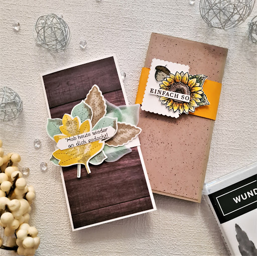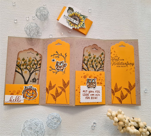 heute hab ich eine besondere Grußkarte gewerkelt. Das Wetter draußen ist ja schon herbstlich, also kann ich mich davon auch inspirieren lassen.