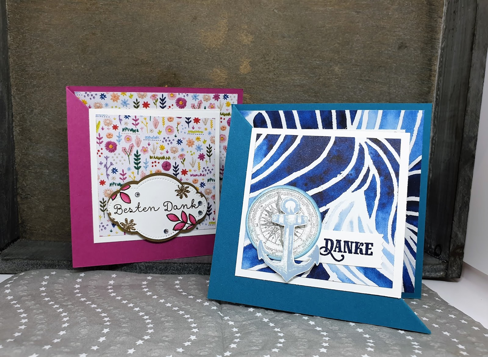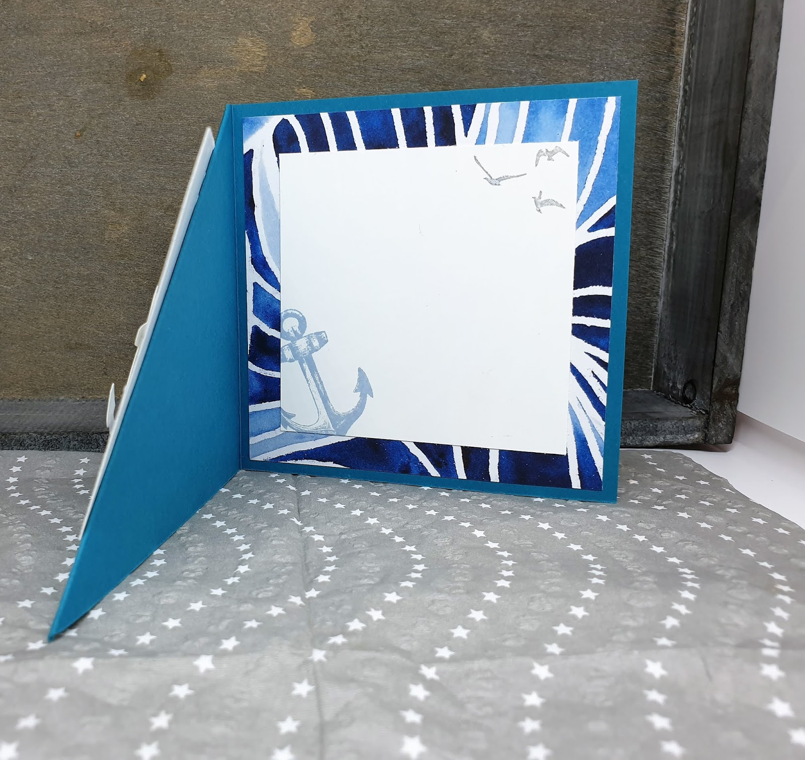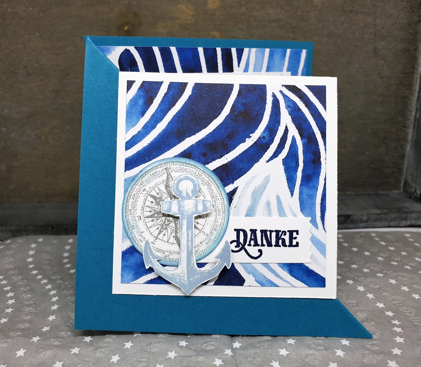 Die Karte in Sommerbeere ist bei unserem Teamtreffen entstanden. Für euch habe ich die maritime Version gebastelt – zu entdecken auch auf meinem YouTube-Kanal: klick