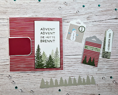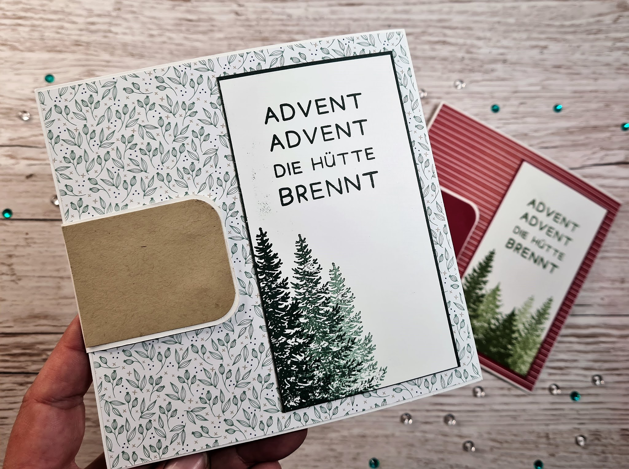 heute gibt es mal eine Idee für ein kleines Adventsgeschenk bzw. ein kleines Mitbringsel. Ich hab eine Klappkarte gewerkelt, die im Innenteil Platz für verschiedene Geschenkanhänger bietet.