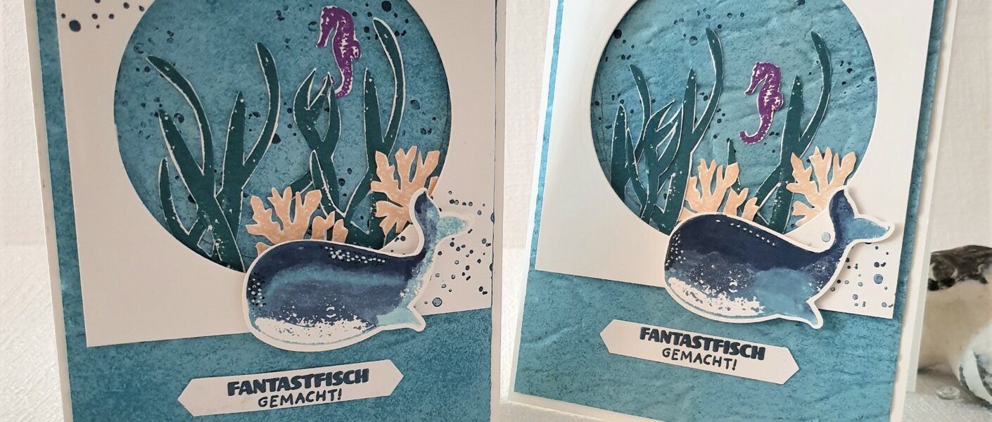 heute habe ich mal wieder eine Grußkarte für euch. Gespielt habe ich mit dem neuen Produkt-Paket Fantastfisch – ein wirklich hübsches Set.