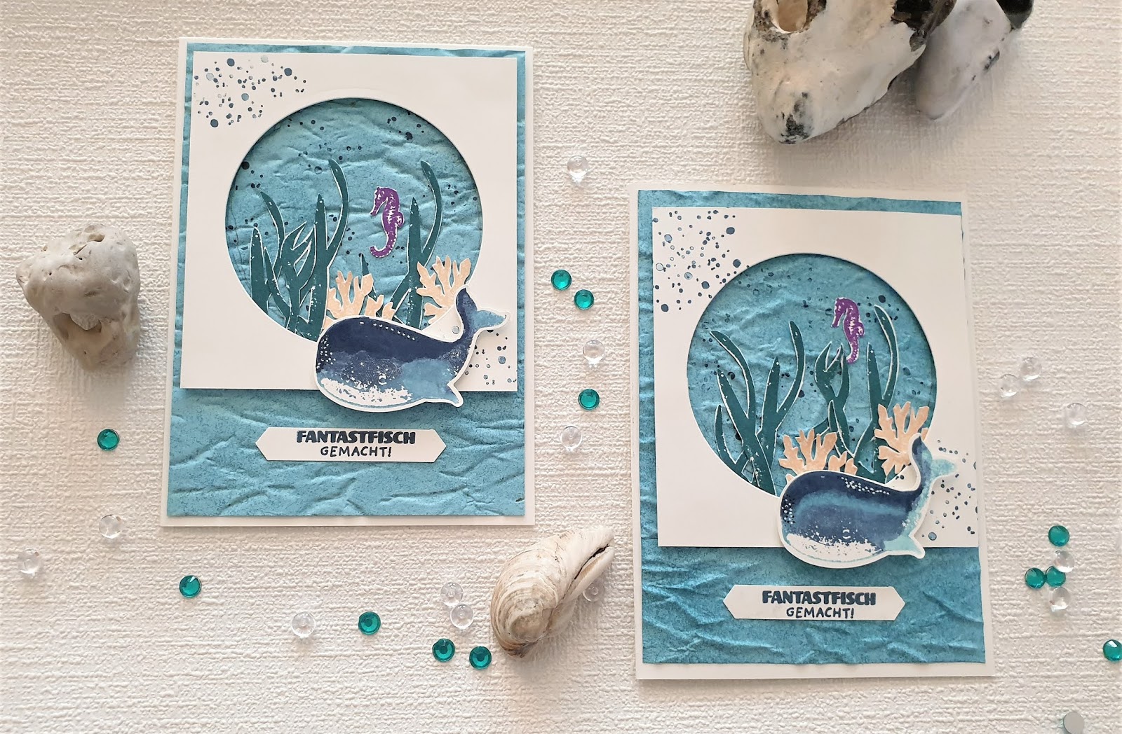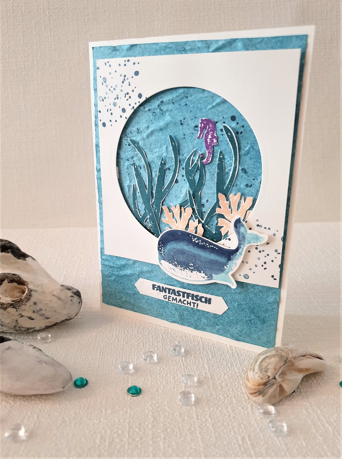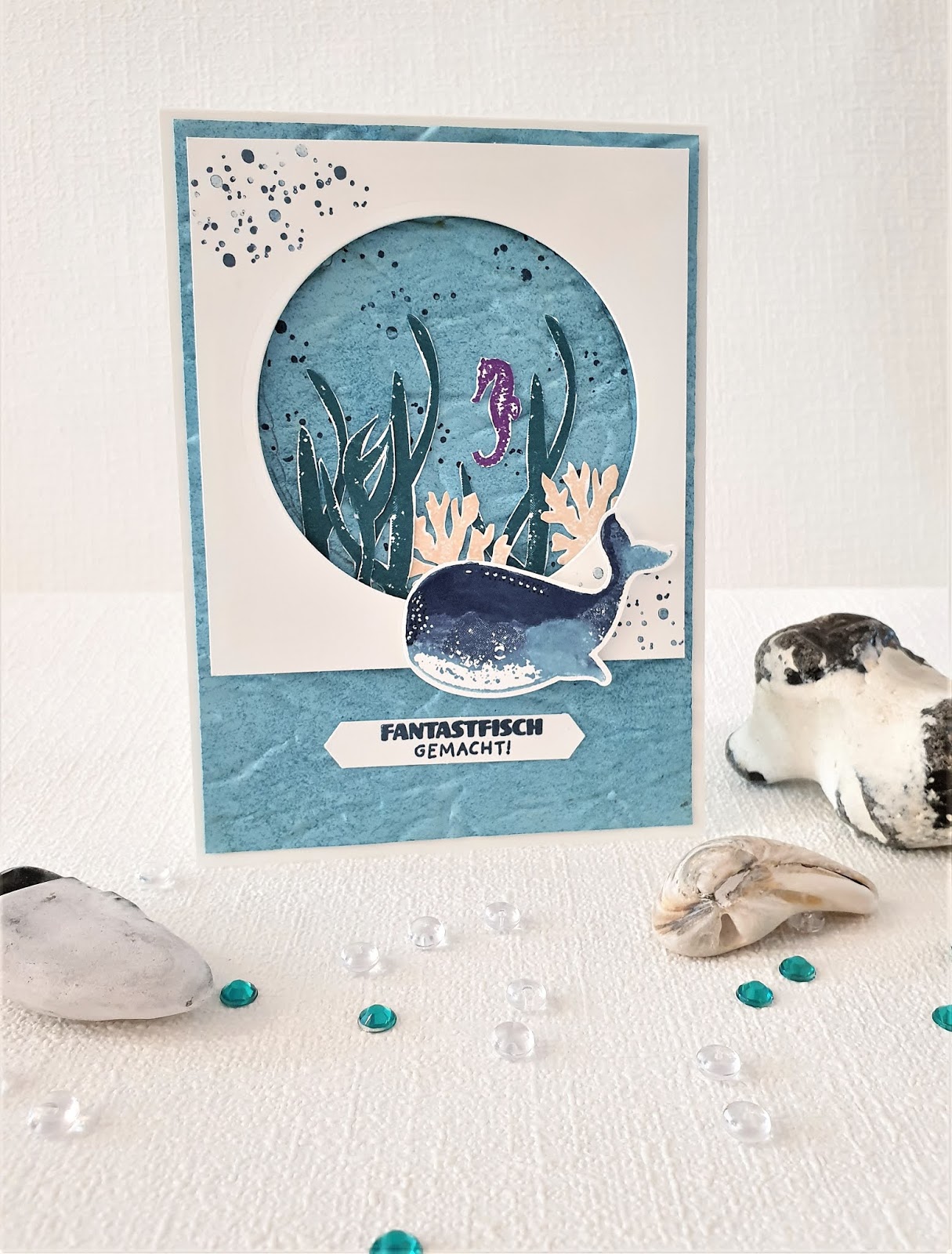 heute habe ich mal wieder eine Grußkarte für euch. Gespielt habe ich mit dem neuen Produkt-Paket Fantastfisch – ein wirklich hübsches Set.