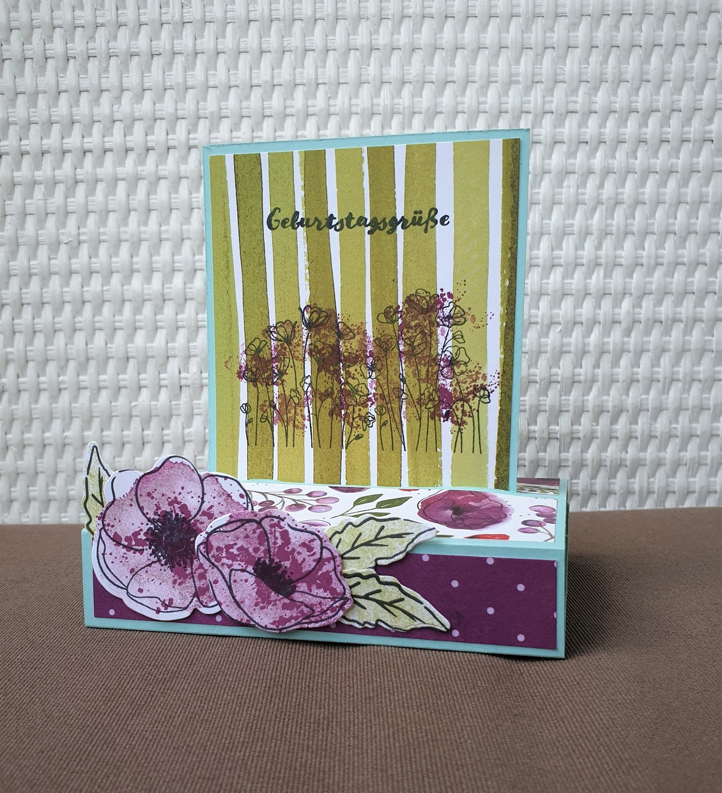 heute habe ich mal wieder eine Grußkarte für euch, aber mit einem wunderbaren Wow-Effekt. Erst sieht die Karte so aus und lässt sich auch prima im Umschlag verschicken.