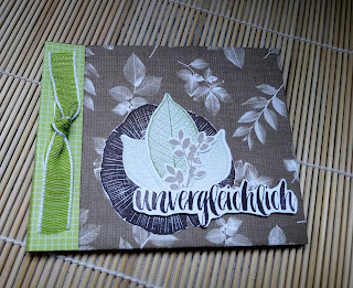 Das Album hat die Maße von 10,0 x 12,0 cm. Verwendet habe ich aus der Produktreihe „Poesie der Natur“ das Stempelset „Kraft der Natur“ sowie das passende Designerpapier.