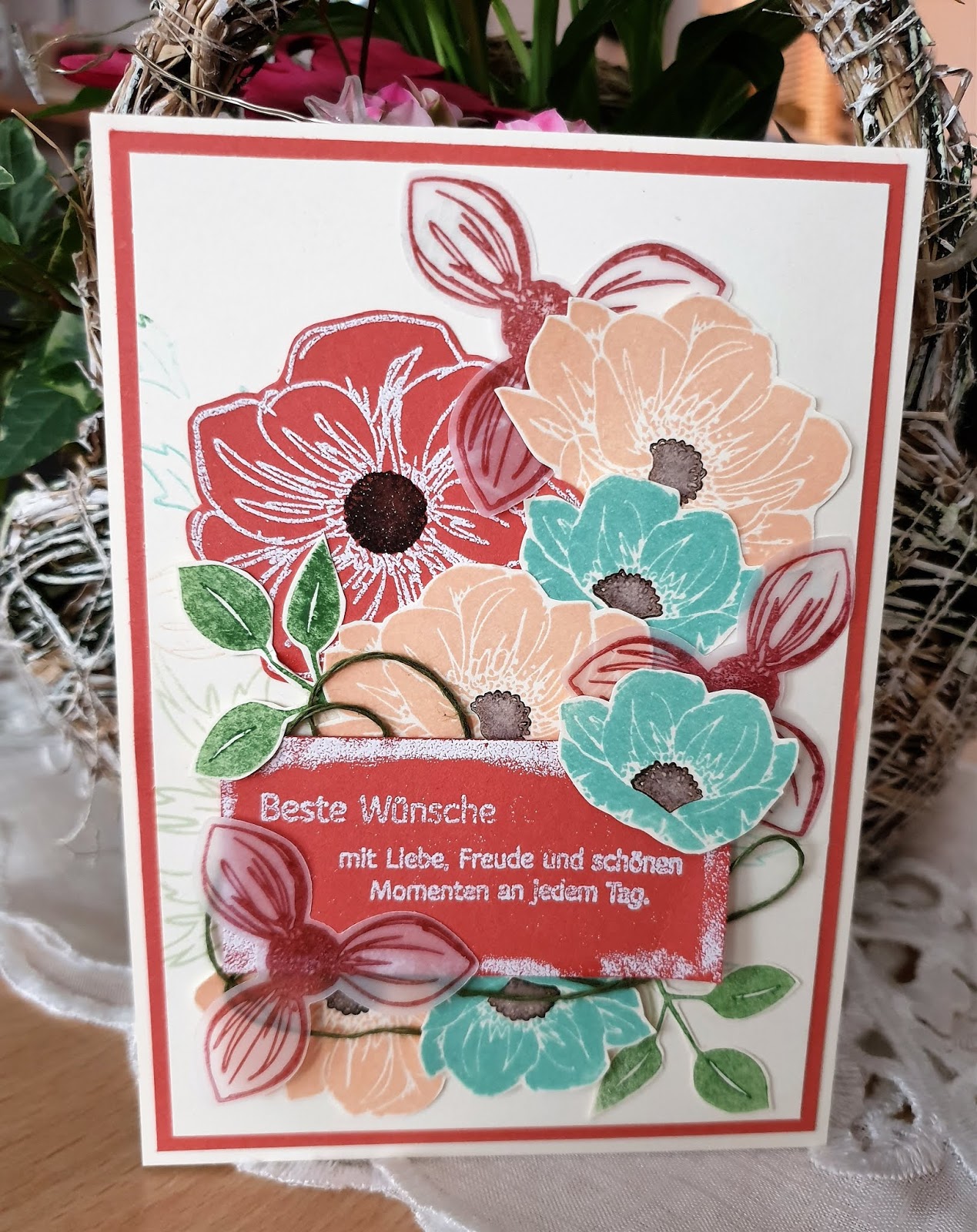 Entstanden ist dabei diesmal eine etwas opulentere Karte mit vielen, vielen Blumen – aber Blumen gehen doch immer: