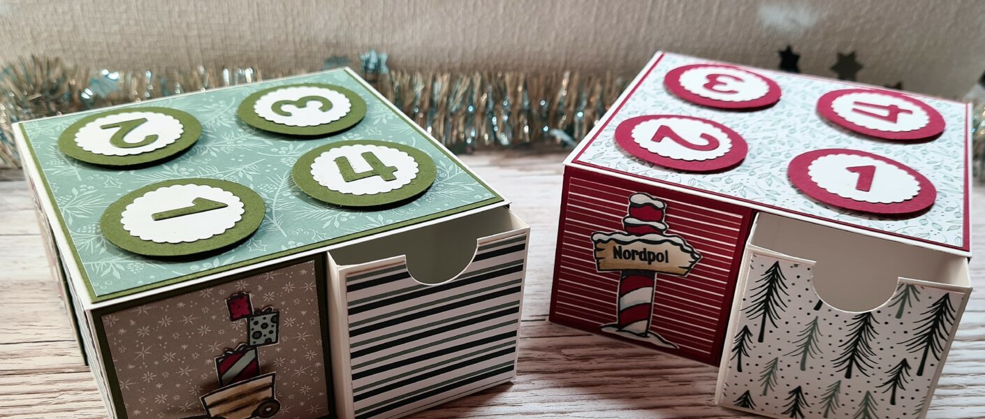 Im Video ist die Version mit dem wundervollen Designerpapier „Zauber der Feiertage“ entstanden, aber ich habe einige Versionen dieses wunderbaren Kalenders gebastelt, weil es einfach so viel Spaß gemacht hat.