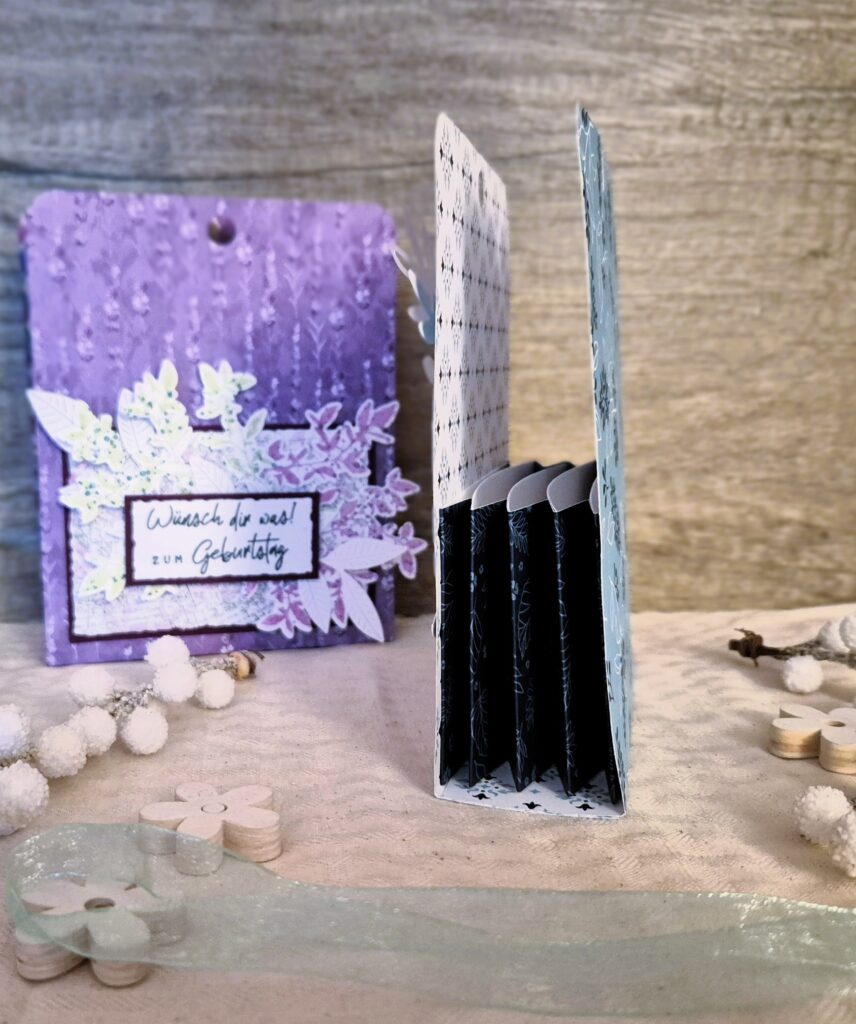 - Designerpapier – Blumen in Blau (Produkt des Monats 12/2025) – Maße: 19,0 x 12,0 cm – Falz lange Seite bei 4,0 cm – 2 Stück