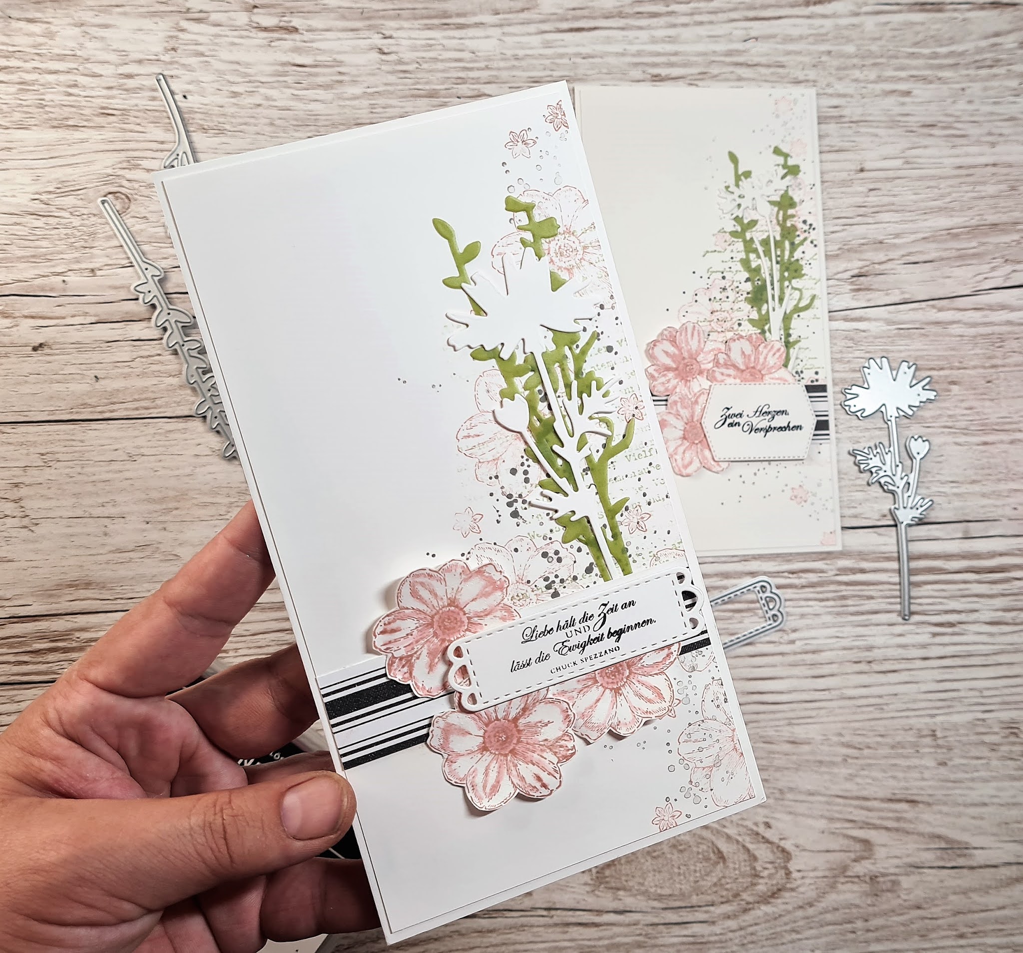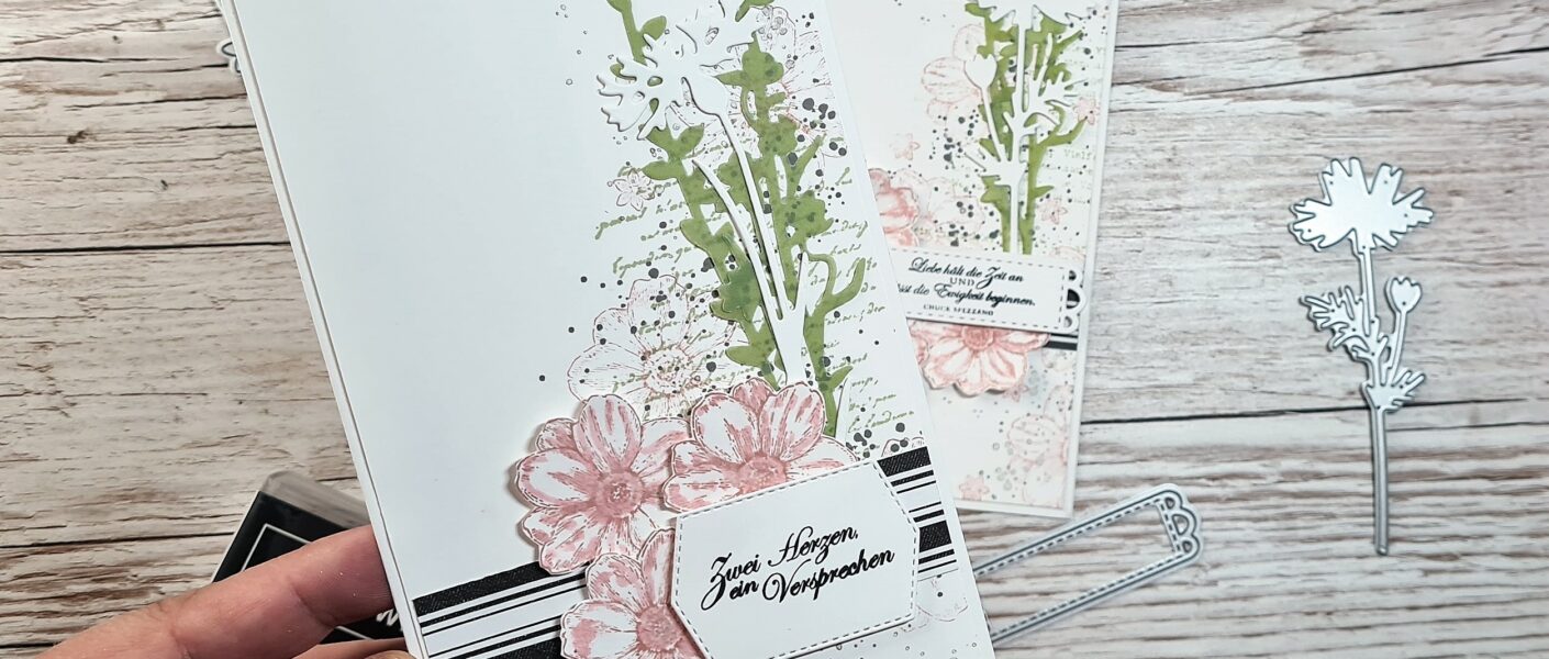 Zu so einem Anlass darf es dann auch gerne mal ein Langformat der Grußkarte sein, das macht das Ganze einfach eleganter. Wie die Karte entstanden ist, könnt ihr euch gern auf meinem YouTube Kanal anschauen: klick