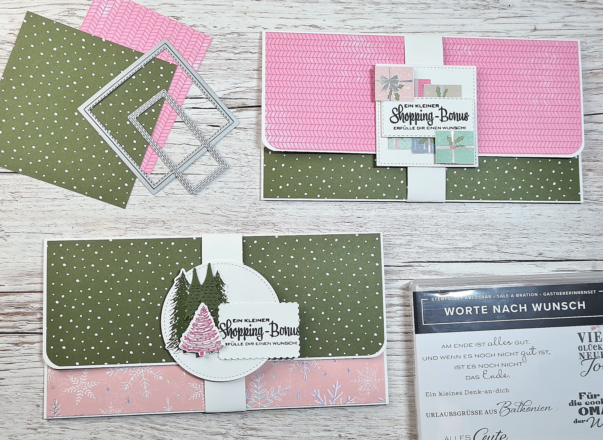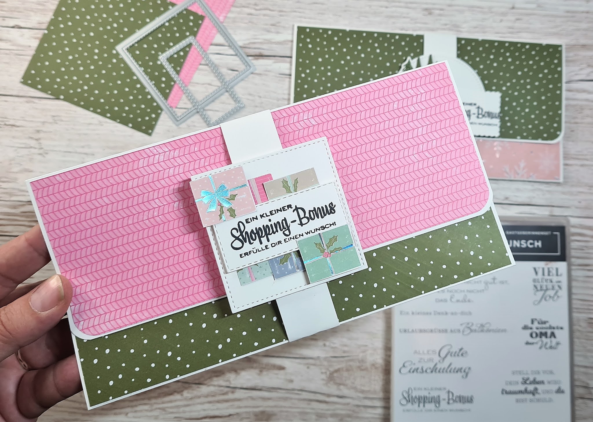ich wollte für euch schon lange ein Gutschein-Verpackung zeigen, die ich gerne nutze, um diese unschönen Ausdrucke in A4 (weil man den Gutschein per Mail bekommen hat) schön zu verpacken. Schließlich ist der Gutschein ja wertvoll und muss einfach würdig verpackt werden.