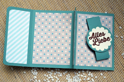 Die Banderole hat die Maße 2,5 x 17,5 cm. Diese habe ich um die Karte gelegt und dann gefaltet.