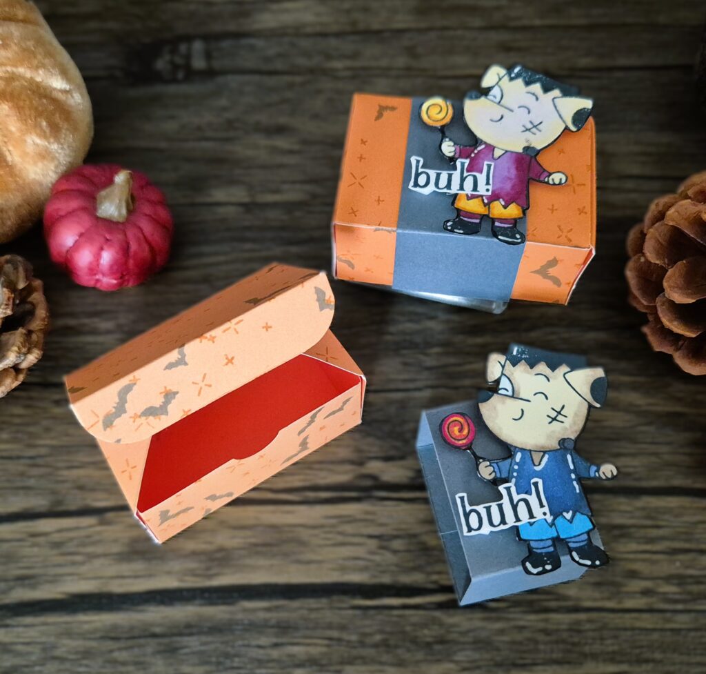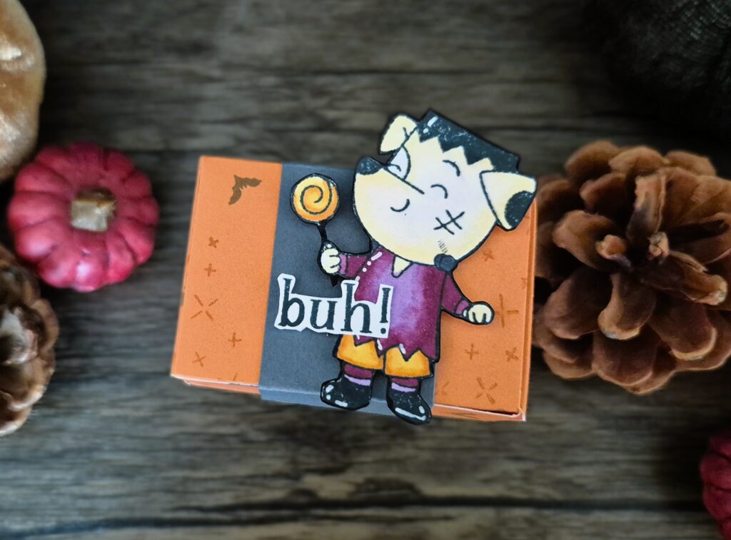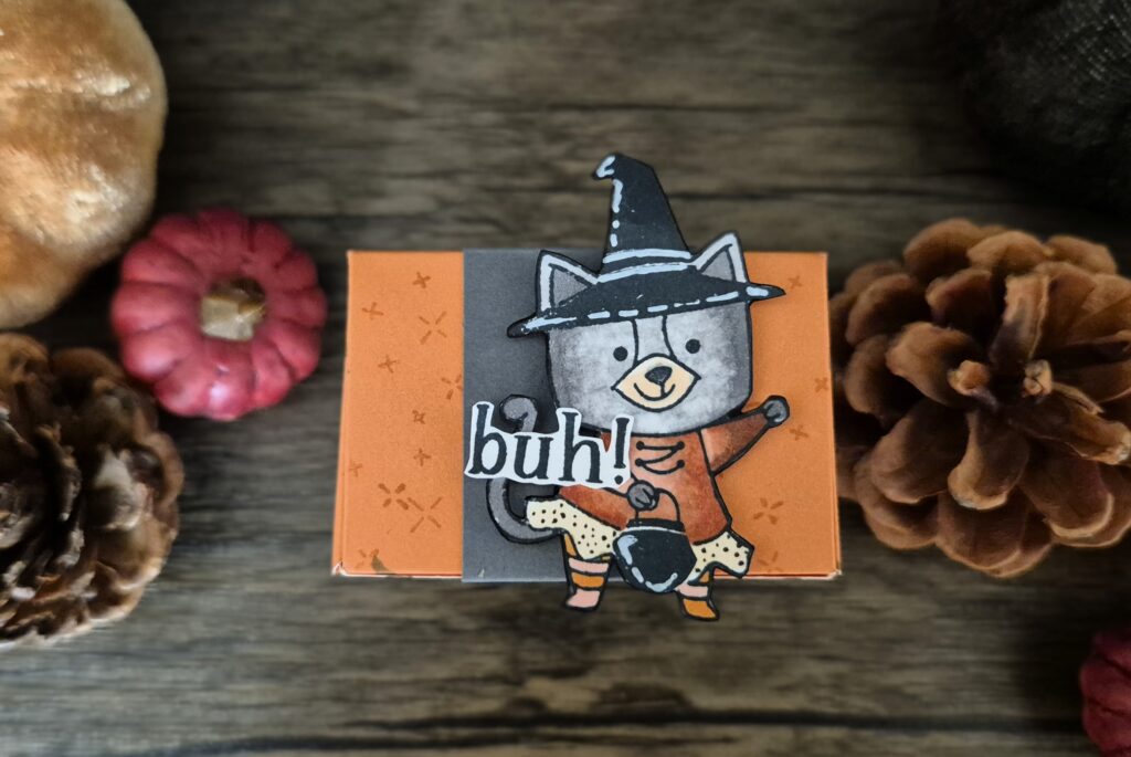 Die zweite Idee ist eine kleine Box, die Idee habe ich von der lieben Andrea (Basteltroeckli), welche ich mit dem Produktpaket „Süßes Halloween“ von Stampin`Up! gezaubert habe – dieses und weitere spannende Produkte könnt ihr in meinem Online-Shop entdecken und bestellen – klick