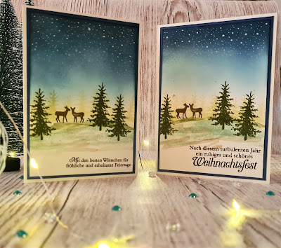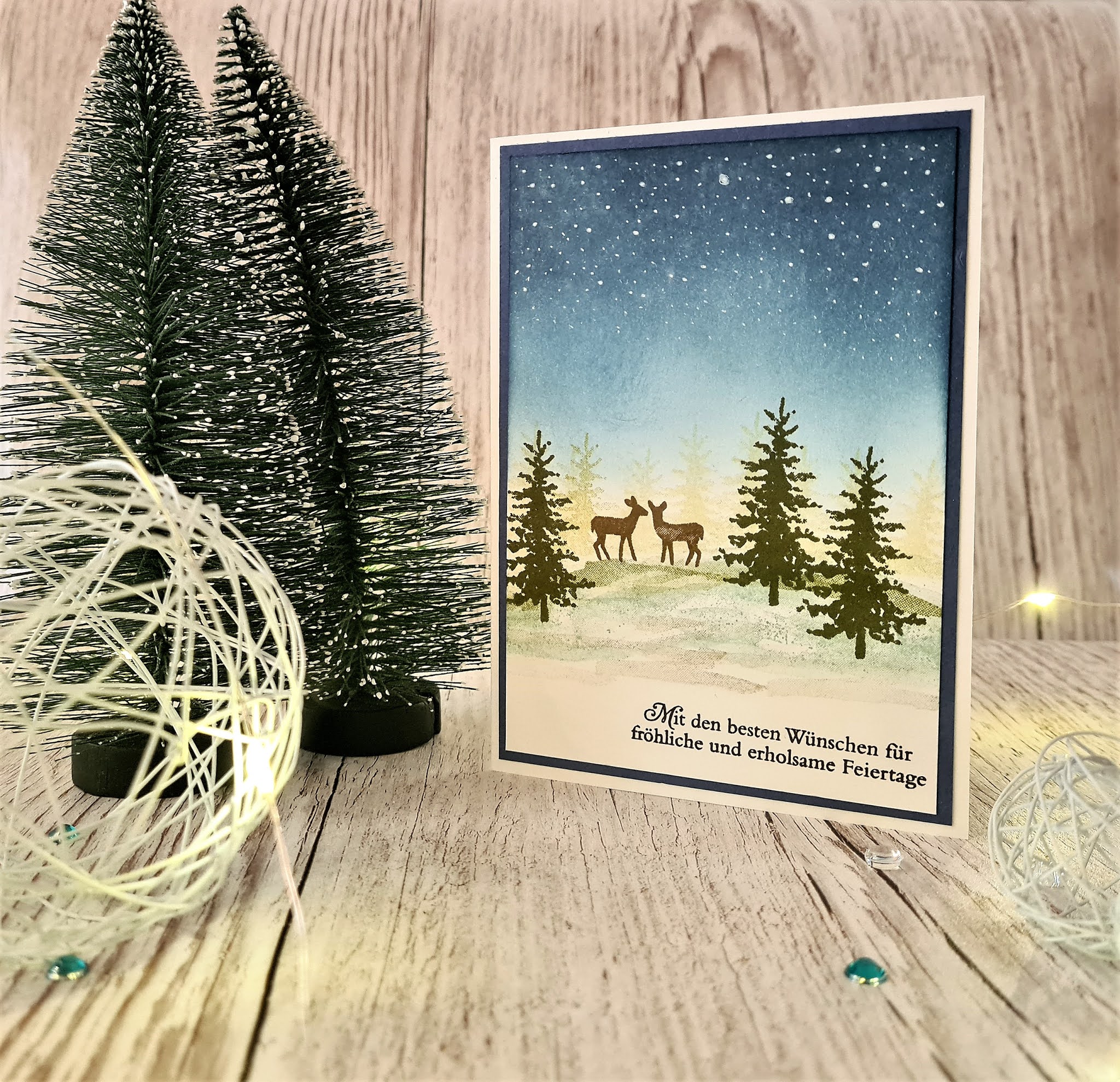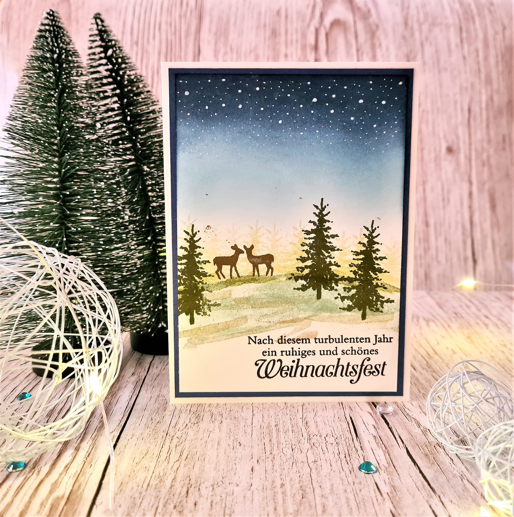 Ich habe mich bei dieser Karte für das Stempelset „Snow Front“ in Kombination mit dem Stempelset „Tannen und Karos“ entschieden.