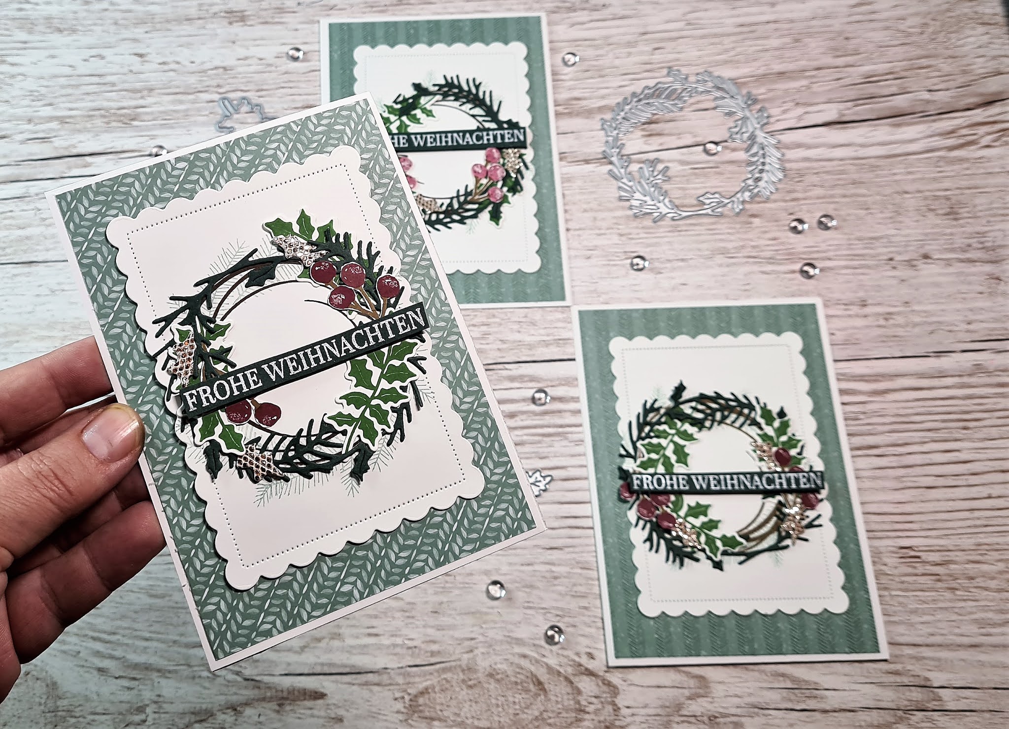 Ich habe mich bei dieser Karte für das Produktpaket „Schöner Kranz“ entschieden, weil ich ja so eine kleine Affinität mit Kränzen habe.