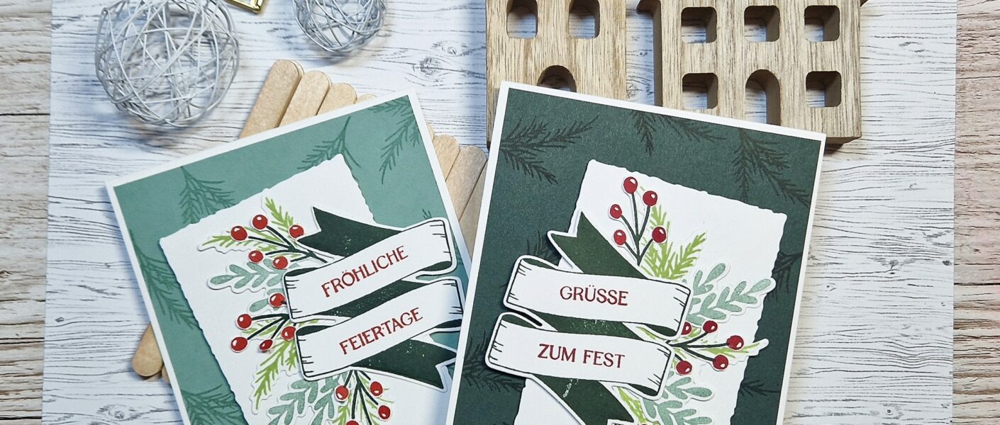 Ich habe mich bei dieser Karte für das Produktpaket „Weihnachtsbanner“ entschieden, weil es einfach wunderbar ist und man damit ein weihnachtliches Gesteck“ auf eine Karte zaubern kann.