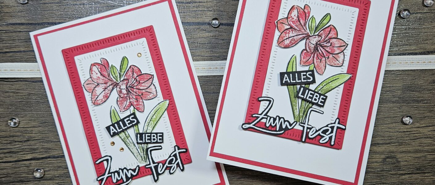 Wir haben ja im aktuellen Mini-Katalog September bis Dezember 2024 von Stampin`Up! das wunderbare Produktpaket „Aufmerksame Amaryllis“. Diese Blume ist ja typisch für Weihnachten, deswegen muss damit natürlich auch eine weihnachtliche Grußkarte gestaltet werden. Dieses Set und viele weitere wunderbare Produkte kannst du in meinem Online-Shop von Stampin`Up!® entdecken und shoppen – klick