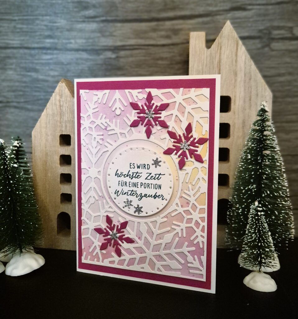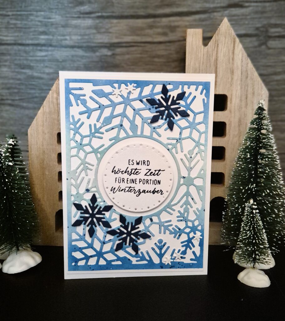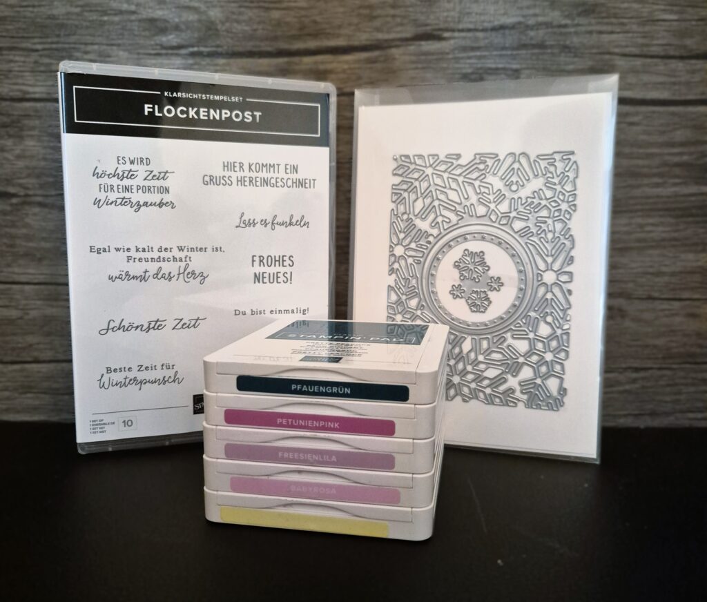 Jetzt aber zu meiner heutigen siebten Weihnachtskarte, bei der ich das Produktpaket „Flockenpost“ genutzt habe.