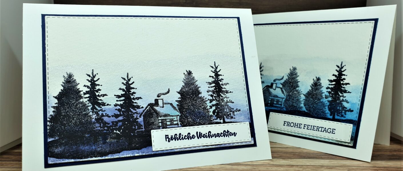 Bei diesen Karten habe ich die beiden Stempelsets Snow Front und Tannen & Karos miteinander kombiniert.