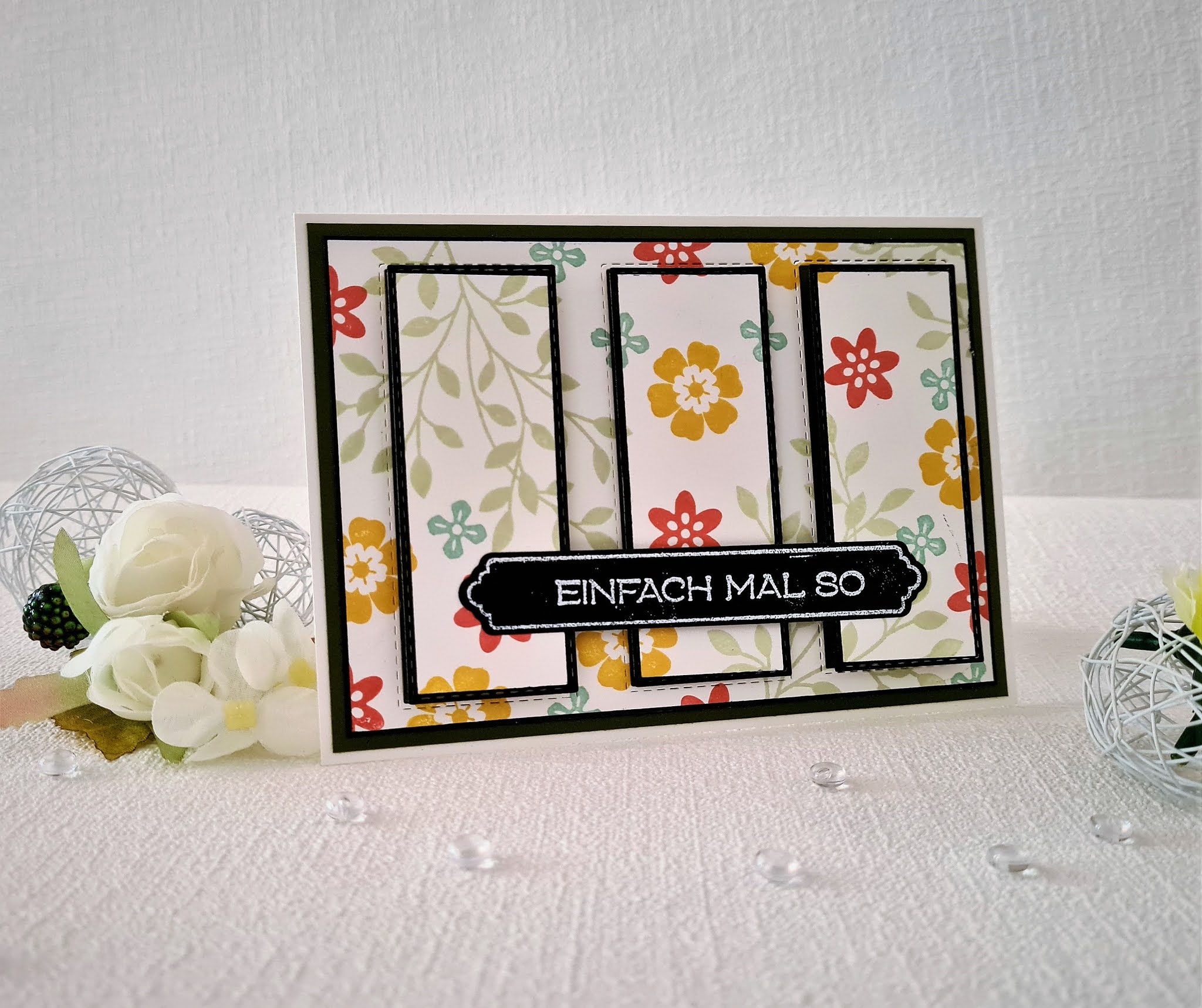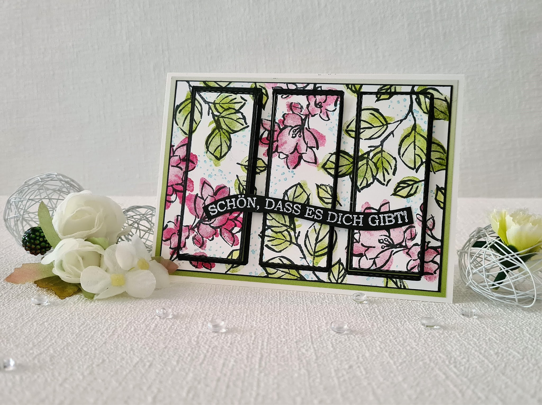 Um euch in Frühlingslaune zu bringen, habe mich für eine farbenfrohe Grußkarte entschieden.