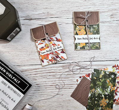 Ich zeige euch heute nochmal eine Gutschein-Verpackung. Diesmal für die Gutschein-Karten. Dieses kleine Taschen sind einfach und schnell zu basteln und lassen sich so verschieden gestalten.