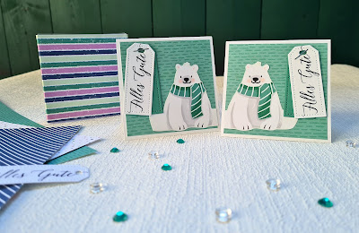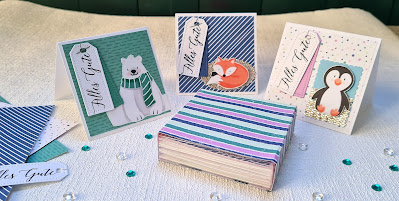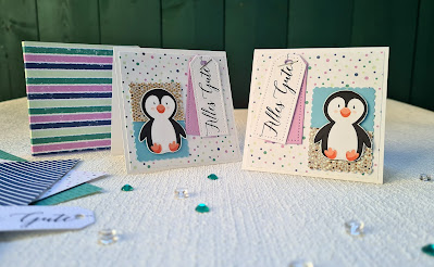 Da mir noch überhaupt nicht nach Herbst oder sogar Weihnachten war, habe ich mich dafür entschieden mit dem süßen Designerpapier Pinguin & Co kleine Mini-Kärtchen zu werkeln. Ich bastle immer wieder so gerne Mini-Kärtchen.