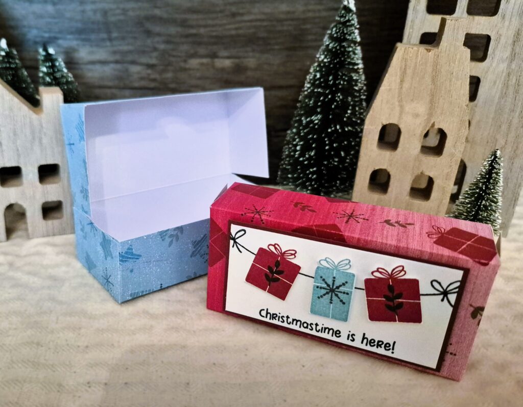 da ich dieses Jahr mehr auf Aufbrauchen setze und wirklich mit den Materialien, die ich habe spielen möchte, habe ich mir diesmal ein paar Kartenrohlinge geschnappt und daraus eine kleine Box gewerkelt.