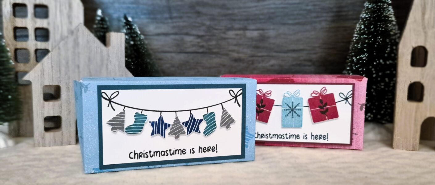 da ich dieses Jahr mehr auf Aufbrauchen setze und wirklich mit den Materialien, die ich habe spielen möchte, habe ich mir diesmal ein paar Kartenrohlinge geschnappt und daraus eine kleine Box gewerkelt.