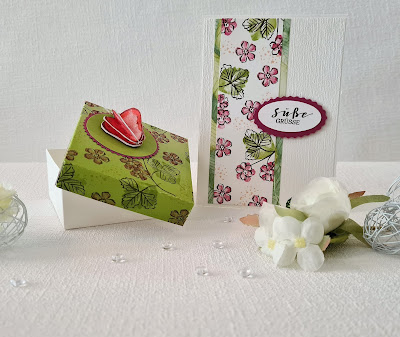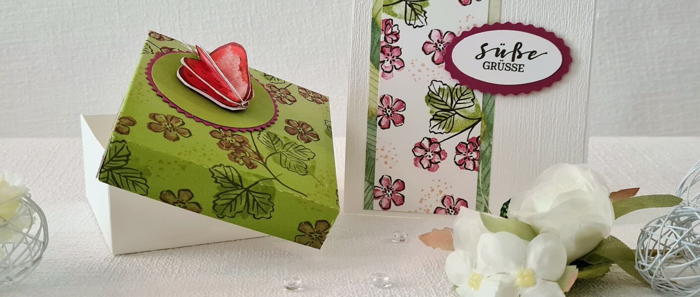 Ich mag die Idee, einer passenden Karte zu einer Schachtel sehr gerne und in meinem absoluten Lieblingsfarben – Wassermelone und Grüner Apfel – erst recht. Was denkt ihr. Stimmt ihr Verpackung und Karte auch gerne aufeinander ab?
