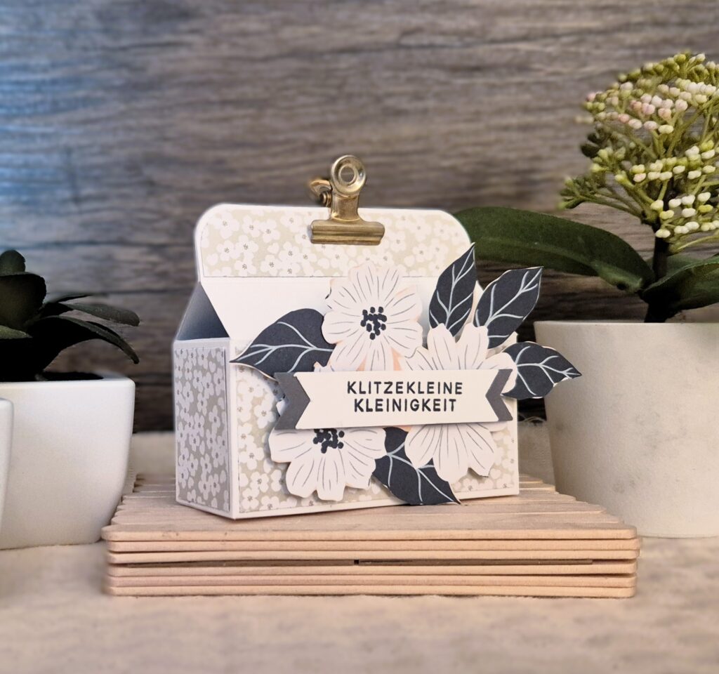 Kommen wir jetzt aber zum kreativen – ich habe mich für eine kleine süße Box entschieden, in welche zum Beispiel ein Lippenpflegestift sehr gut reinpasst. Aber wie ich euch kenne, findet ihr genug, was in die kleine Box passt. Inspiriert hat mich die liebe Katja von modernkreativstempeln – die ihr gerne für all eure Wünsche rund um Stampin`Up!® kontaktieren könnt.