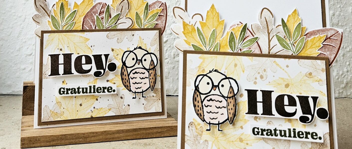Ist doch eine schöne, herbstliche Grußkarte – und eignet sich absolut für viele Anlässe. Das Stempelset Hey ist einfach unglaublich vielseitig und peppt jede Karte richtig gut auf.
