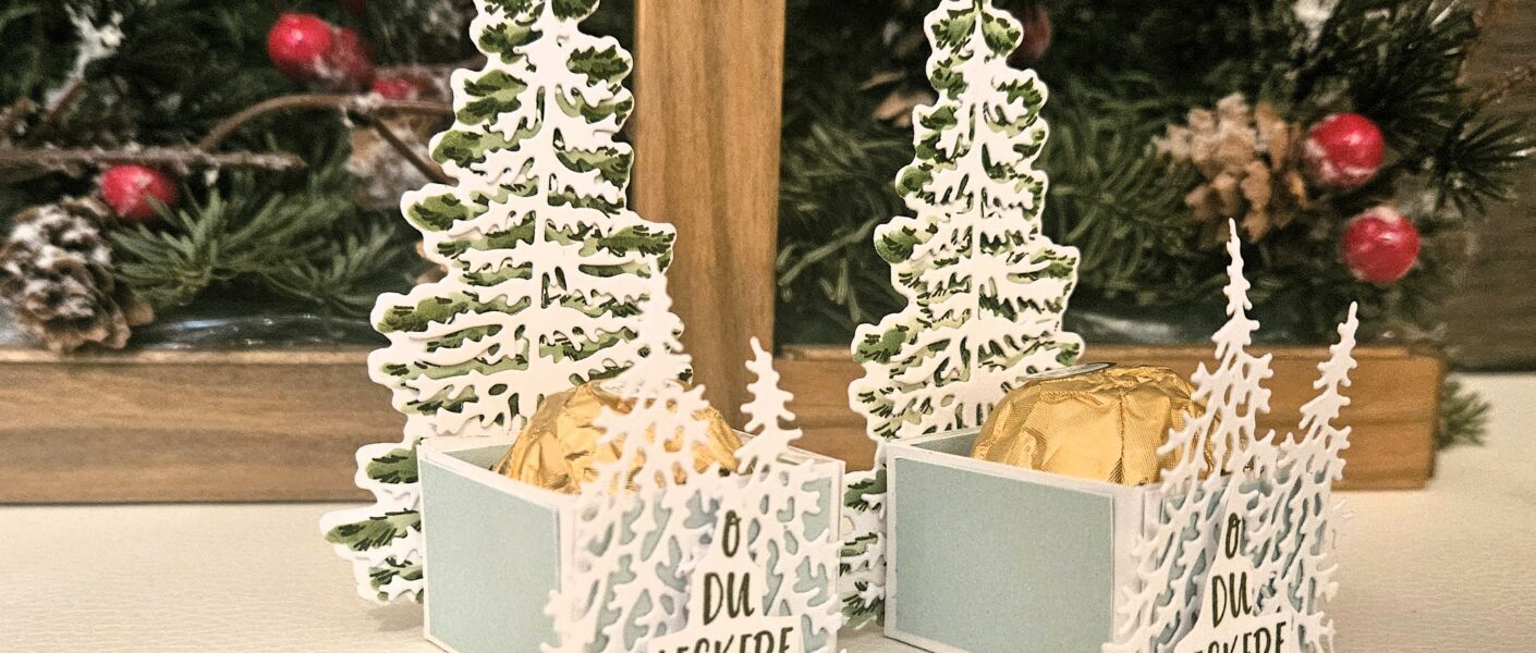 heute habe ich eine letzte Idee für die besinnliche Weihnachtszeit. Für den Weihnachtstisch habe ich mir ein kleines Goodie gewerkelt. Gespielt habe ich mit dem tollen Produktpaket „Verschneiter Wald“, welches ihr im Online-Shop von Stampin`Up!® zusammen mit vielen weiteren tollen Produkten entdecken und bestellen könnt – klick