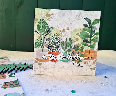 das heutige Projekt ist dadurch entstanden, dass ich unbedingt das Designerpapier Pflanzenecke benutzen wollte und die Pflanzen hübsch in Szene setzen wollte. Und da ich außerdem schon immer mal so eine Geschenktüte selbst basteln wollte – ja, hab ich vorher tatsächlich noch nie gemacht – ist diese Idee entstanden:
