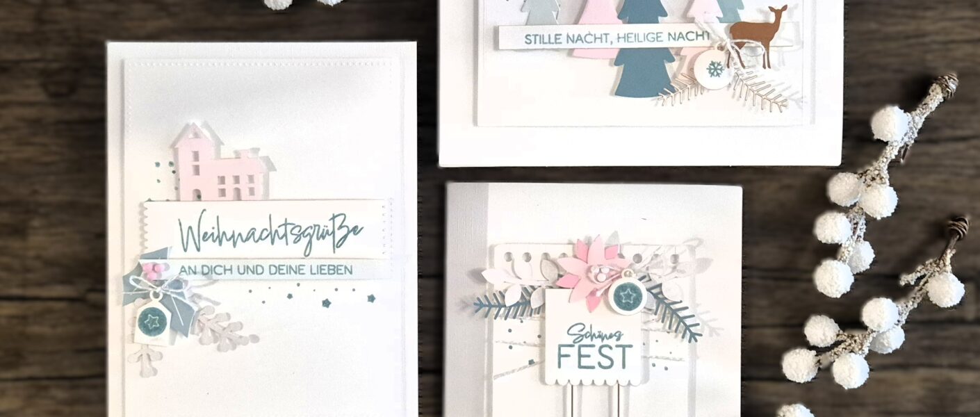 Mit dem Set habt ihr die Möglichkeit 9 echt tolle Weihnachtskarten in drei verschiedenen Designs zu gestalten und ich sag euch, dass Set ist einfach absolut toll. Mit einem wunderschönen Stempelset und die Farbkombination – ein Träumchen!