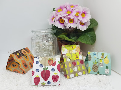 Die Inspiration dazu habe ich auf Pinterest gefunden. Gesucht habe ich nach einer Verpackung für die Designerpapiere in 6×6 Inch. Denn ich wollte unbedingt, dass Designerpapier Tutti Frutti aus dem Frühjahrskatalog (S. 29) verwenden. Es ist so wunderbar bunt und fruchtig.
