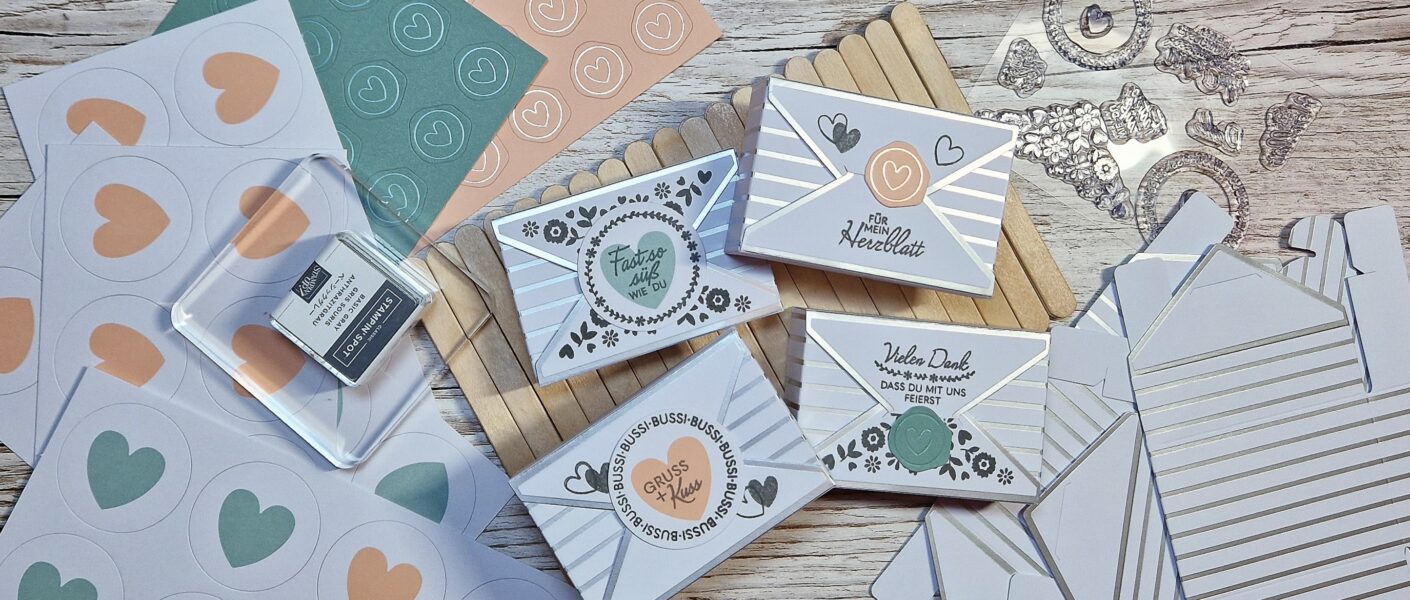 heute möchte euch gerne ein neues Kreativ-Komplett-Set von Stampin`Up! vorstellen. Es handelt sich dabei, um das Set – Süße Liebesgrüße – hier könnt ihr insgesamt 20 kleine Verpackungen in 4 verschiedenen Designs basteln. Ich finde diese wunderbar gestaltet und die Farbkombination ist ein Träumchen.
