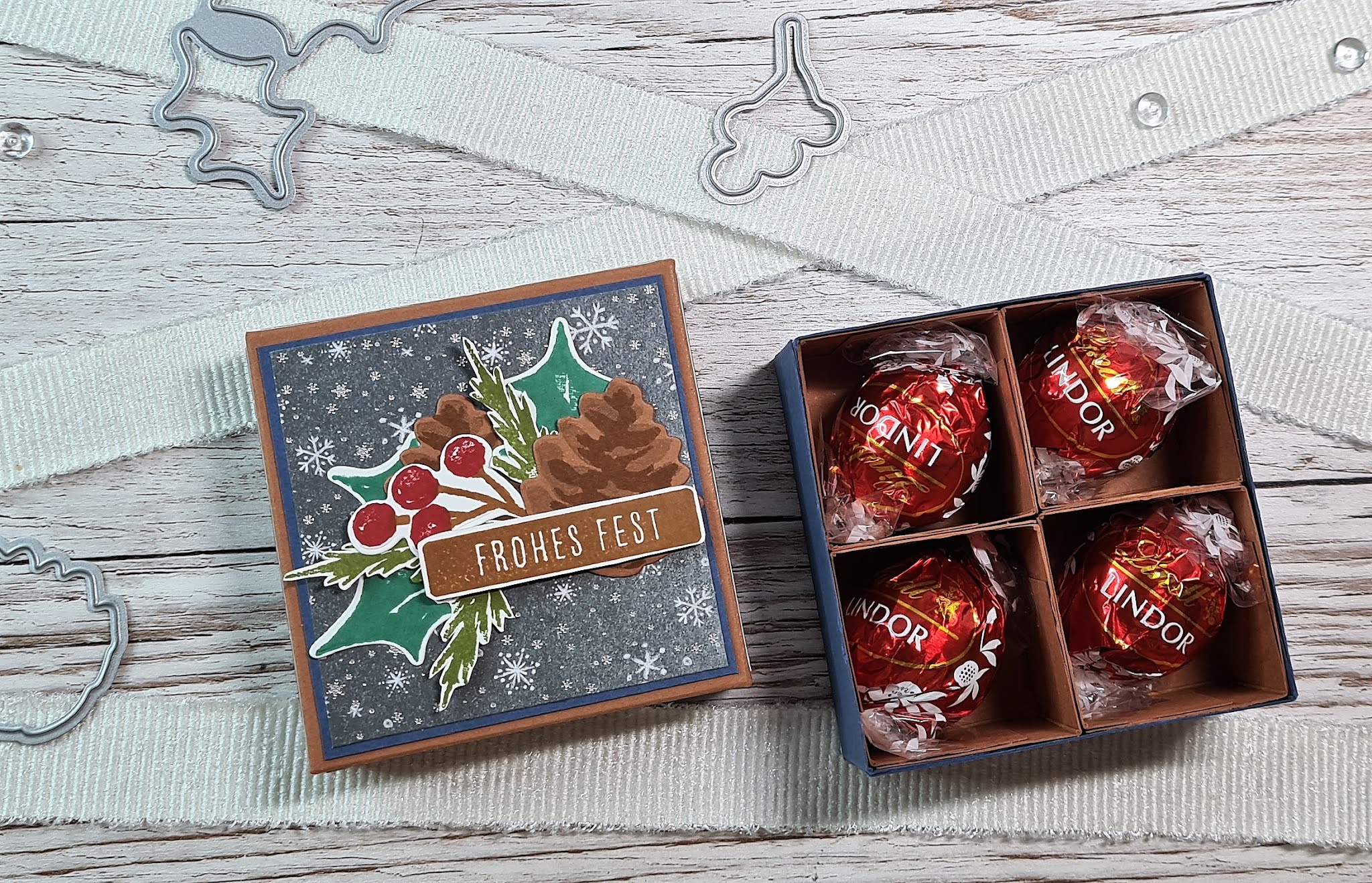 heute habe ich mich daran erinnert, dass ich letztes Jahr ein Projekt für eine weihnachtliche Verpackung für die Männerwelt gemacht. Warum also dieses Thema dieses Jahr nicht noch einmal aufgreifen. Und weil ich so einige Männer kenne, die auch gerne mal naschen, ist eine hübsche Verpackung für Süßigkeiten entstanden: