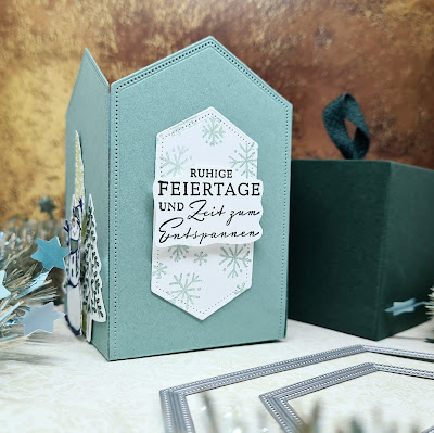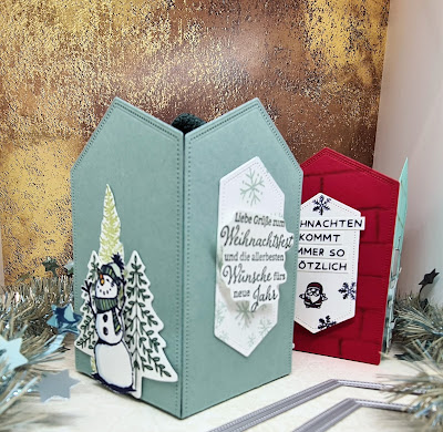 Im Häuschen ist eine kleine Verpackung verborgen, die man an einer Schleife nach oben ziehen und öffnen kann. Wie das Häuschen entstanden ist, könnt ihr euch gerne auf meinem YouTube Kanal anschauen – klick