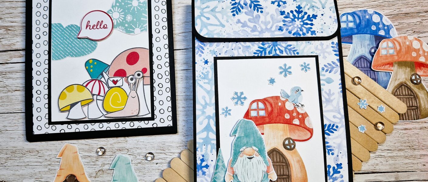 - Designerpapier – Wichtelwunderland – Maße: 11,0 x 5,0 cm ( 4 3/8″ x 2″) – 3 Stück
