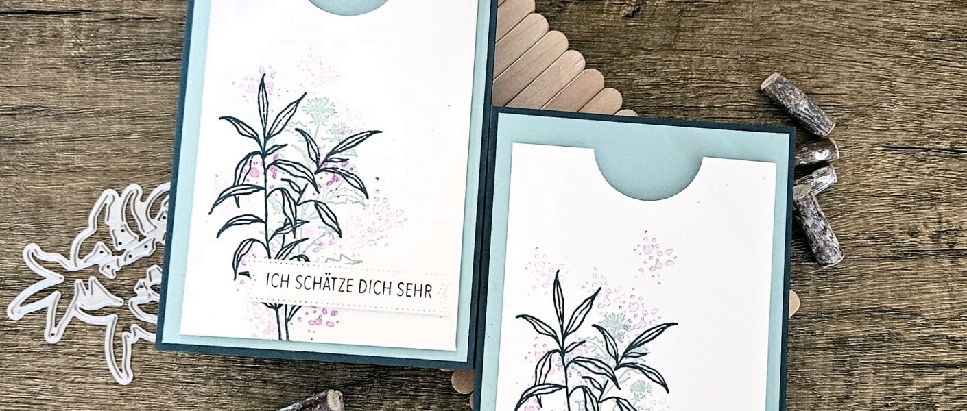 heute habe ich mal zwei neue Ideen für Grußkarten für euch. Diese sind im Rahmen unseres Workshops (Claudia und ich als Team) entstanden. Die Teilnehmer waren echt begeistert und ich wollte euch diese Ideen nicht vorenthalten. Beide Karten sind mit dem neuen tollen Produktpaket Aufmerksame Grüße entstanden.