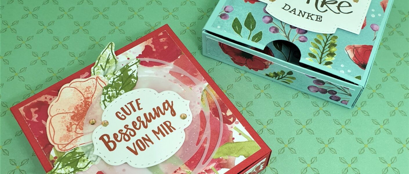 Natürlich habe ich heute mit neuen Sachen aus dem Mini-Katalog gespielt und entstanden sind dabei diese kleine schönen Schiebeboxen: