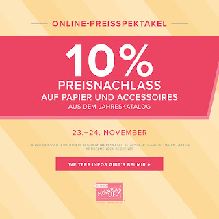 Am 25. und 26. November 2018 gibt es dann 10% Preisnachlass auf Stempel und Produktsets (Stempelsets, Projektsets, Kartensets, Nachfüllsets, Erinnerungen und Mehr, Stanz-Box-Sets)