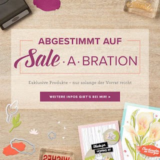 Die Sale-A-Bration-Zeit bei Stampin`Up! ist immer eine ganz besondere Zeit. Es gibt viele Gratisprodukte zu entdecken. Pro Bestellwert von 60 € kannst du dir aus der aktuellen Sale-A-Bration-Broschüre ein Gratisprodukt aussuchen. Das kann ein Stempelset sein, aber auch Designerpapier oder besondere Bänder.