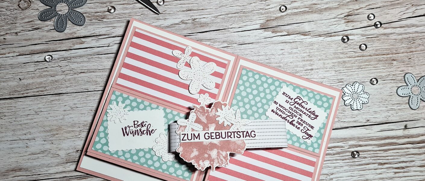 ihr mögt besondere Kartenformen und ich auch. Deswegen hab ich heute eine Flip-Up-Karte für euch. Die auch noch den Vorteil hat, das man wieder schön Designerpapier verbrauchen kann,