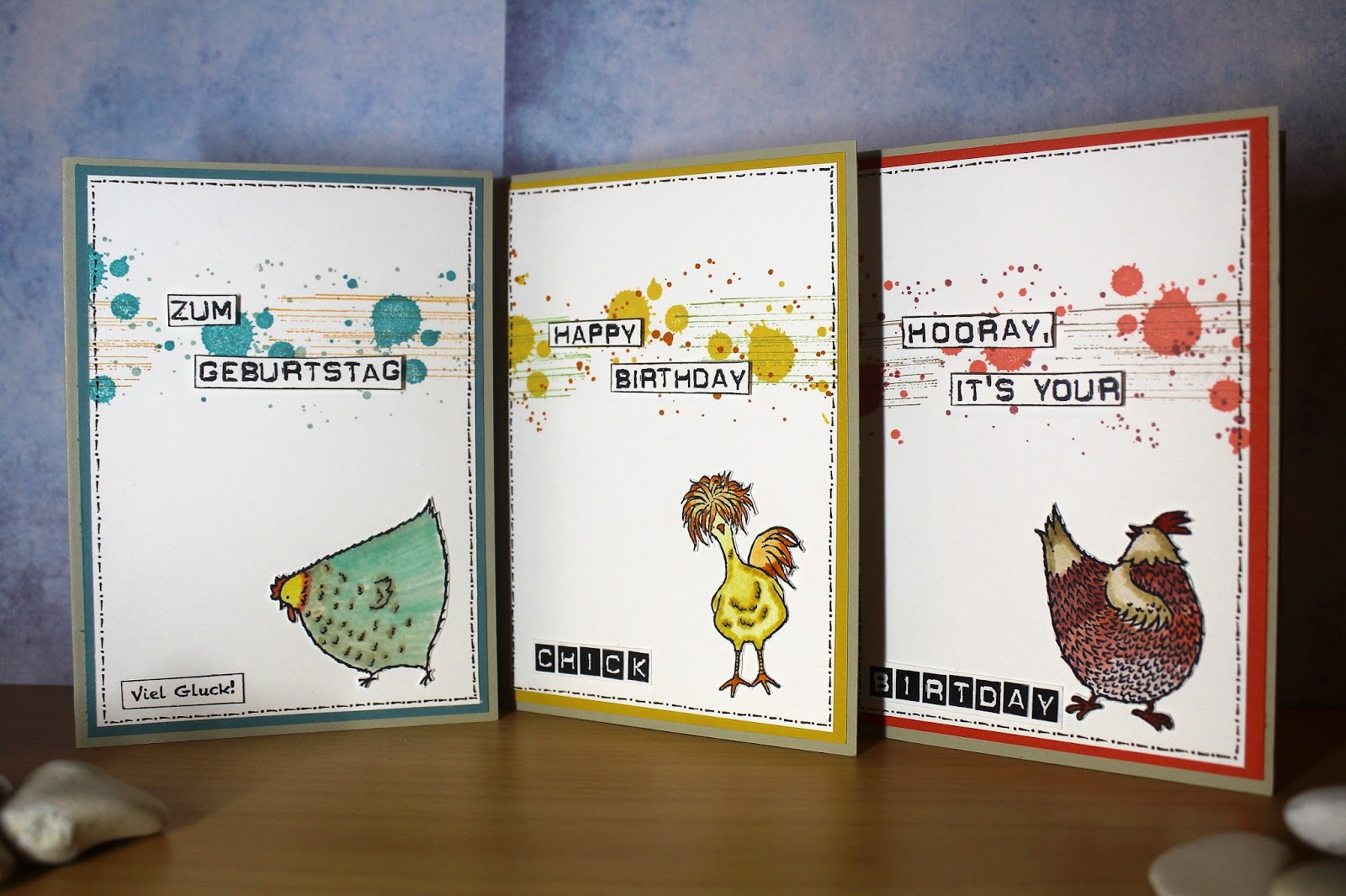 Ach was für eine schöne Idee, liebe Mandy! Du hast dir sogar die Mühe gemacht, die Hühner zu colorieren … Sehen total toll aus, deine Karten!