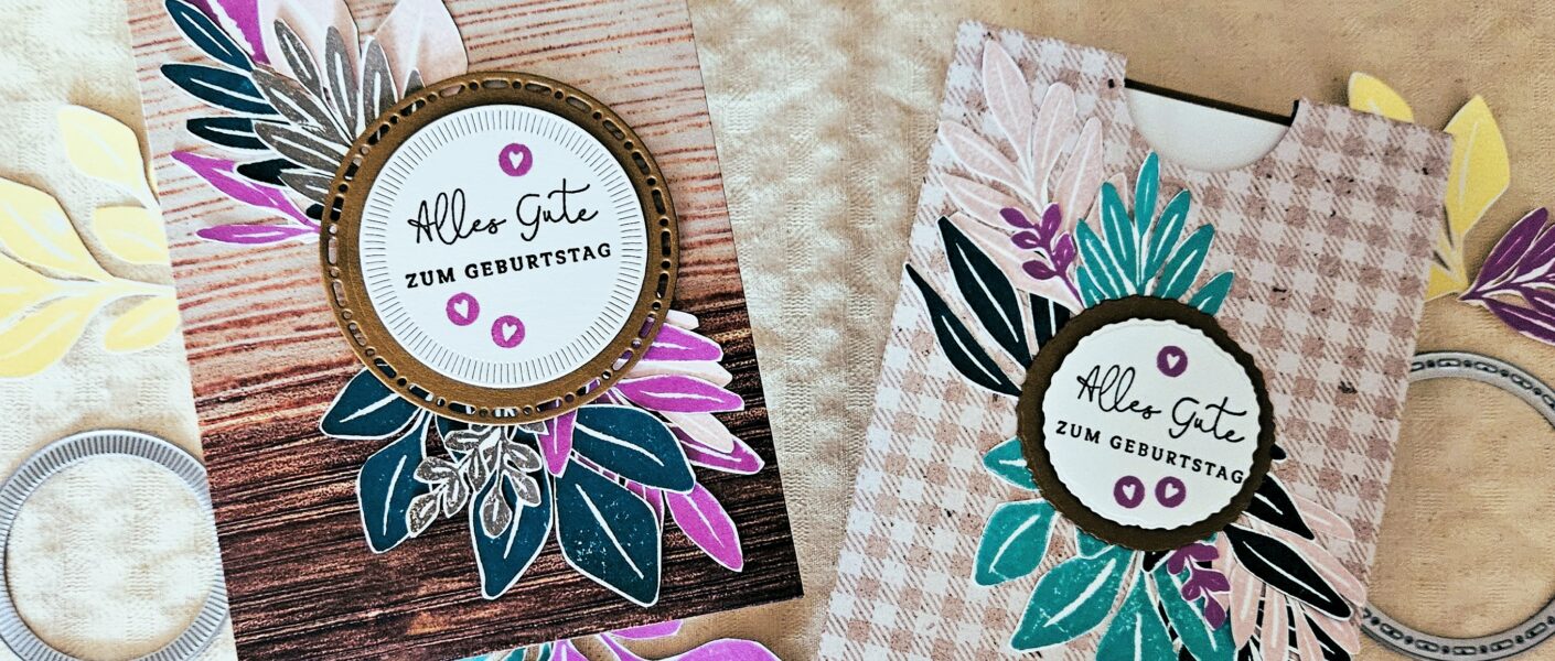 heute habe ich eine Idee für eine schnelle Gutschein-Verpackung für euch. Es ist ja einfach so, dass wir Gutscheine sehr gerne verschenken. Mit dem tollen großen Stempelset „Leaf Collection“ lässt sich diese wunderbar gestalten.