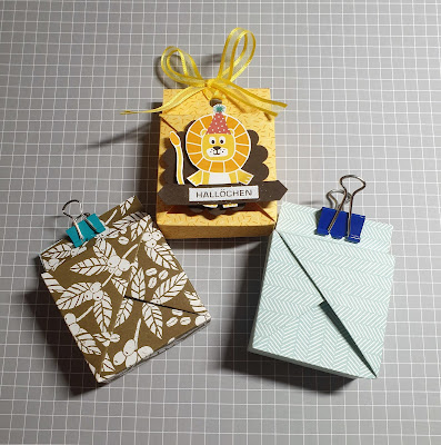 heute habe ich mal eine Idee für eine kleine schnelle Verpackung für euch. Die Box ist eigentlich eine Box ohne kleben, aber ich hab trotzdem ein bisschen geklebt.