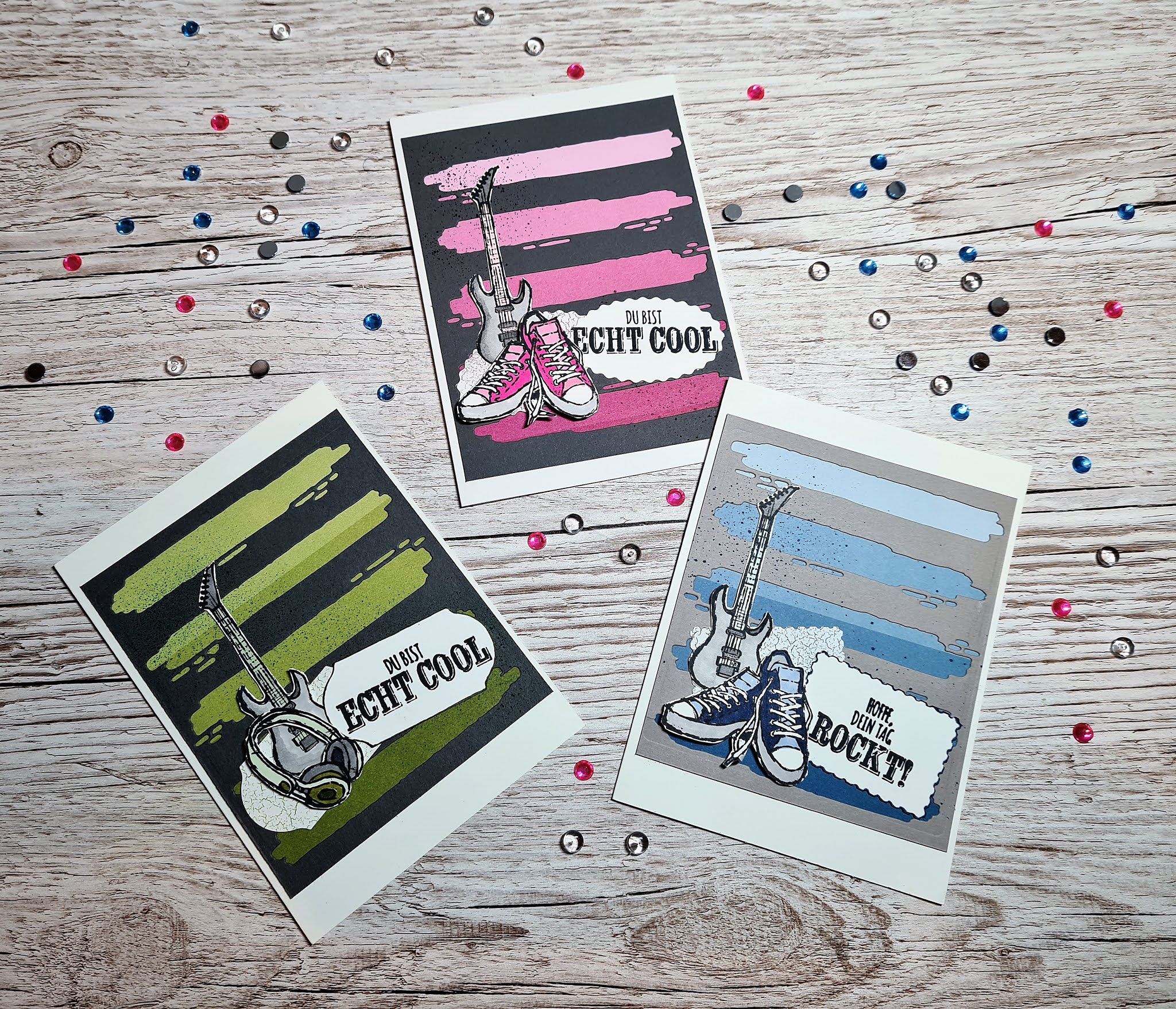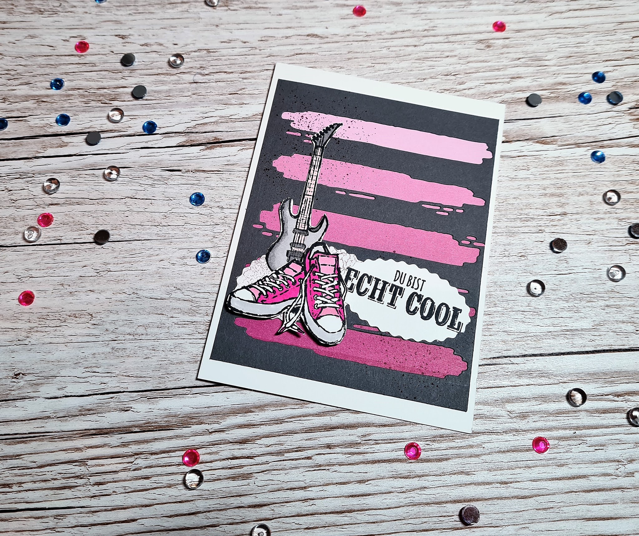 Ich brauchte zwei Geburtstagskarten für coole Jungs und da eignet sich für mich das Stempelset „Echt cool“ immer noch am besten dazu. Und dann hab ich mir gedacht, es gibt doch aber auch echt coole Mädchen. Deswegen ist im Video die Girly-Variante entstanden