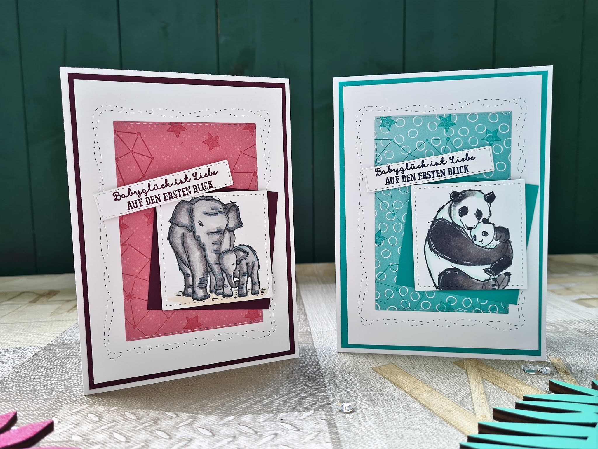 Bei meiner heutigen Kartenidee bin ich nochmal einem Wunsch gefolgt – ein Idee mit dem Stempelset „Im Babyglück“ und „Sternstunden“ – diese beiden eignen sich einfach perfekt für Karten zur Geburt und daher sind diese beiden Karten entstanden: