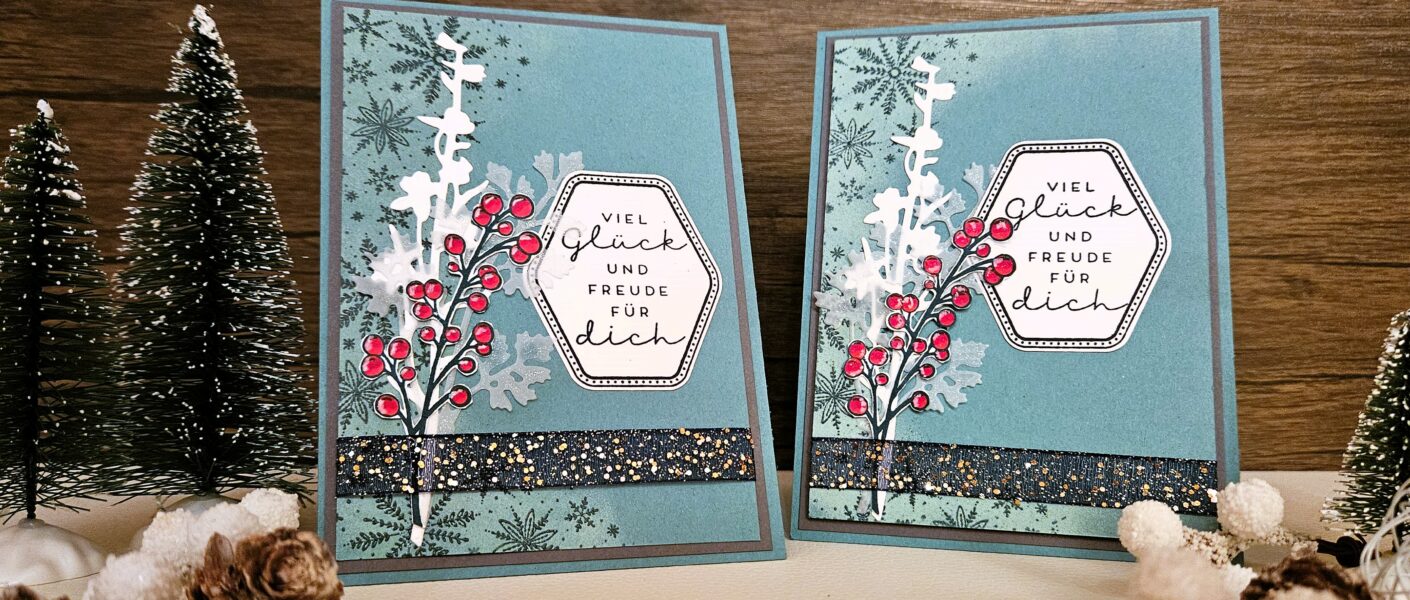 Im aktuellen Mini-Katalog Januar bis April 2024 von Stampin`Up! gibt es ja das Produktpaket „Hexagone von Herzen“, welches einfach nur toll ist. Da wir ja noch Winter haben, hatte ich die Idee einer eisigen Grußkarte zum Geburtstag im Kopf. Mit dem traumhaften Stempelset „Winterzweige“ (das ist das Stempelschätzchen) lies sich diese Idee perfekt umsetzen.