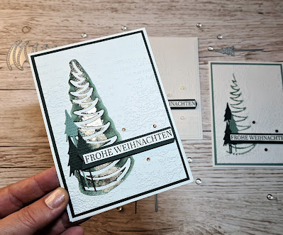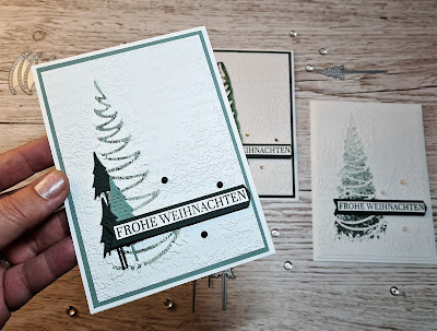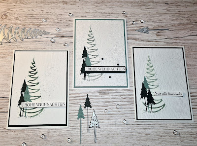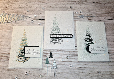 Gespielt habe ich mit dem wunderbaren Produktpaket – Baumzauber. Ich bin so begeistert von diesem Set, dass ich immer wieder dazu greife. Entstanden sind erstmal diese wunderbaren Karten: